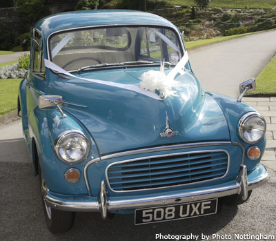 We also have a beatifully restored turquoise blue 1958 4 door Morris Minor saloon with Jaguar cream interior. Although "Maurice" looks practically brand new he is nearly 50 years old. "Maurice" and "Molly" make a perfect partnership.